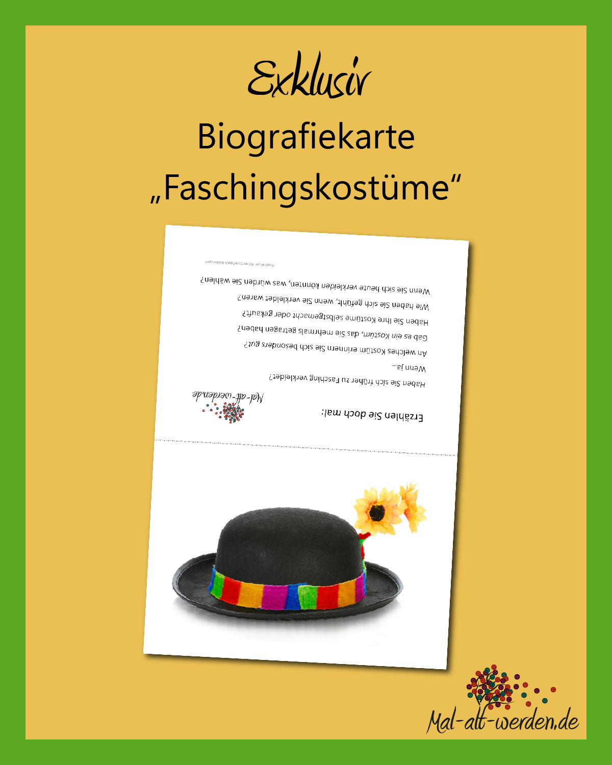 In diesem Beitrag stellen wir Ihnen die Biografiekarte Faschingskostüme vor, die sich wunderbar für biografische Gespräche in der närrischen Zeit eignet. Schon das Motiv auf der Vorderseite lädt zum Innehalten und Betrachten ein. Zu...