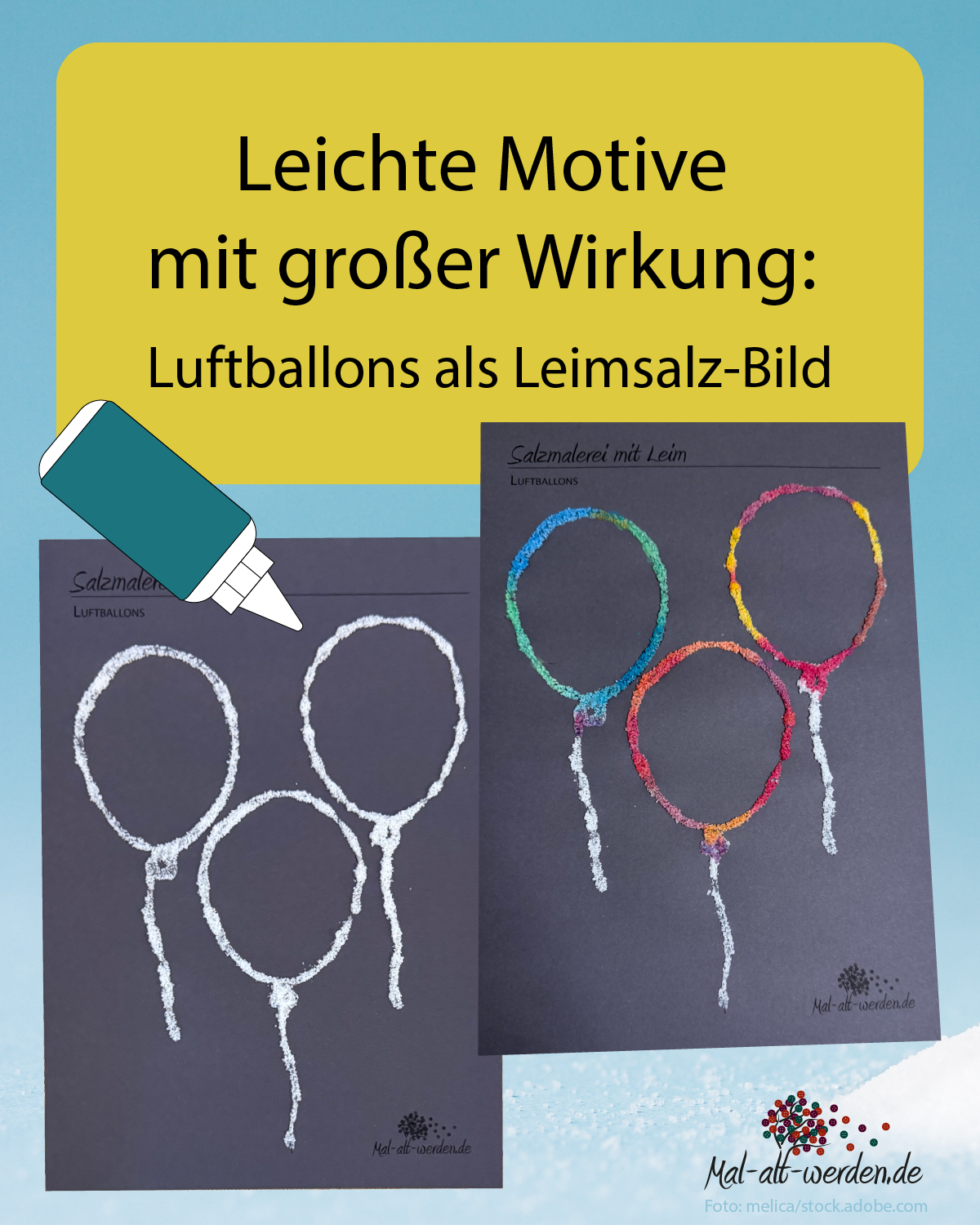 Luftballons verbinden viele Menschen mit Fasching, Karneval, Geburtstagen oder Feiern. Als Leimsalz-Bild wirken sie lebendig und leicht. Nach dem Übertragen oder Ausdrucken der Vorlage auf dunkles Papier werden die Linien mit Leim nachgezogen. Das...