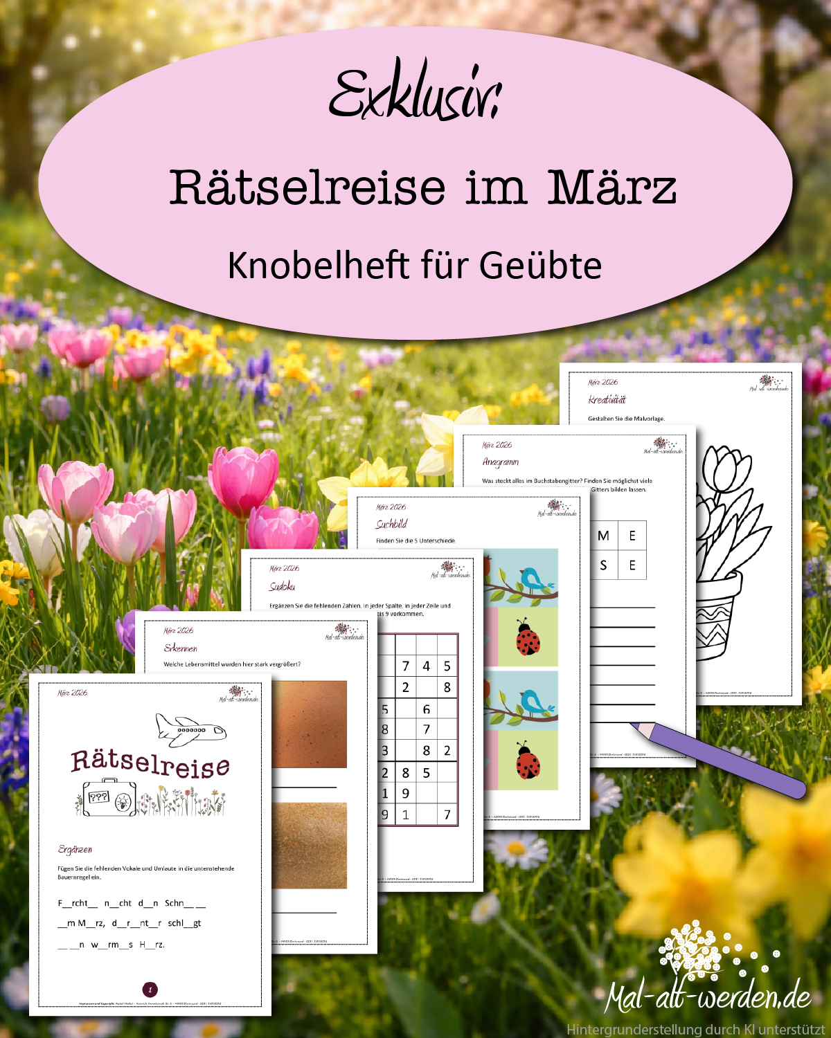 Mit dem Rätselspaziergang für ungeübte Seniorinnen und Senioren im März halten Sie ein vielseitiges, druckfertiges PDF-Heft in den Händen. Dieses Heft wurde so gestaltet, dass auch Menschen, die nicht regelmäßig rätseln oder kognitive Herausforderungen...