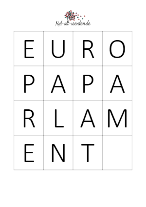 Anagramm zu dem Wort “Europaparlament” als Übung für das Gedächtnistraining zu dem Thema Europa
