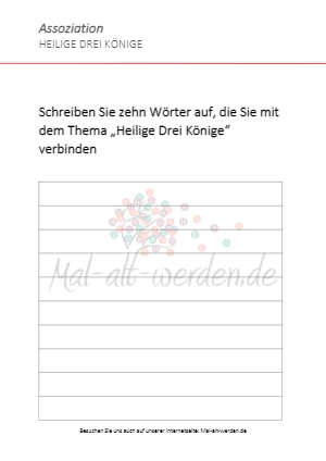 Unser heutiges Arbeitsblatt für das Gedächtnistraining mit den Senioren zu dem Thema Heilige Drei Könige befasst sich mit dem freien Assoziieren.