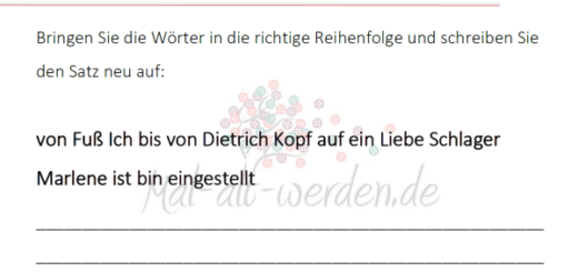 Unter der Übung auf dem Arbeitsblatt sind Linien abgedruckt. Dort können die Sätze aufgeschrieben werden.