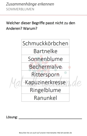 “Zusammenhänge erkennen” Unser Arbeitsblatt für das Gedächtnistraining zum Thema Sommerblumen