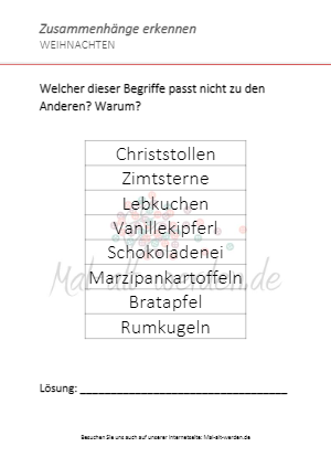Das kostenlose Arbeitsblatt “Zusammenhänge erkennen” zum Thema Weihnachten