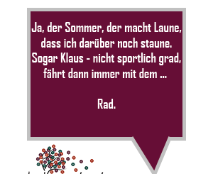 Die Geschichte darf in Schriftform NICHT auf anderen Internetseiten verbreitet werden. Eine Ausnahme bilden Heimzeitungen von Seniorenheimen, die auf der Seite der Pflegeeinrichtung als PDF-Datei zur Verfügung stehen. Selbstverständlich freuen wir uns immer über einen Link. Das Verschicken per E-Mail ist unter den genannten Bedingungen möglich.
