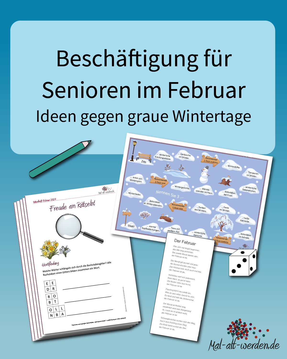 Der Februar bietet viele Möglichkeiten für eine abwechslungsreiche Beschäftigung. Mit Gedächtnistraining, Geschichten, Gesprächen und biografischen Impulsen lassen sich auch ruhige Wintertage sinnvoll gestalten. Die hier vorgestellten Materialien unterstützen dabei praxisnah und alltagstauglich. Bestellen Sie auch unseren Newsletter, um über neue Beiträge informiert zu werden!
