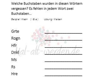Wenn die Übung einzelne Teilnehmer überfordert, können Sie die Buchstabensalate auch an die Tafel schreiben und gemeinsam lösen. Hier noch eine Idee für UNTERFORDERTE Teilnehmer…
