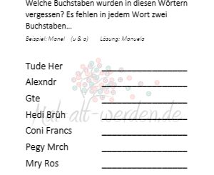 Bei unserem heutigen Arbeitsblatt mit Buchstabensalaten sind uns die Buchstaben rund um das Thema Namen durcheinander geraten.