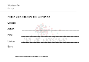 Europa wächst und wächst – immer mehr Länder möchten dieser Gemeinschaft beiwohnen. Zum Thema Europa haben wir ein Arbeitsblatt “Wortsuche” als Gedächtnistraining für die Senioren vorbereitet.