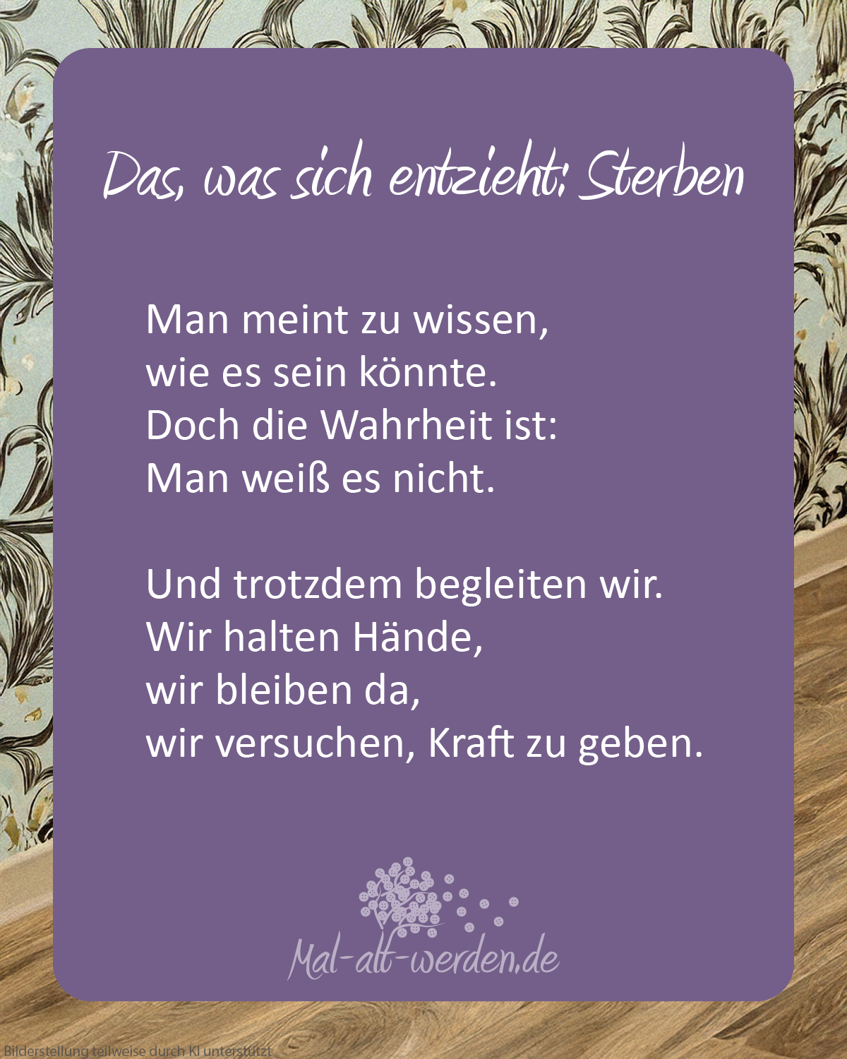 Gerade in der Begleitung Sterbender braucht es Mut, Achtsamkeit und Vertrauen in die eigene Kraft. In unserer Online-Fortbildung zur Sterbebegleitung geht es genau darum: Wie kann es gelingen, Menschen in dieser besonderen Lebensphase einfühlsam, würdevoll und authentisch zu begleiten?