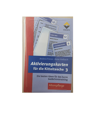 Auf dem ersten Platz der Beliebtheitsskala stehen die Aktivierungskarten für die Kitteltasche von Andrea Friese. Auch wenn ich in der Seniorenarbeit kaum jemanden kenne, der einen Kittel trägt ;-), sind mir die Aktivierungskarten auch aus meinem eigenen Arbeitsalltag im Seniorenheim noch gut vertraut. Auf kleinen Karten findet man vor allem Übungen für das Gedächtnistraining , die sich sowohl in der Einzelaktivierung als auch als “Lückenfüller” in Gruppenaktivierungen hervorragend einsetzen lassen.