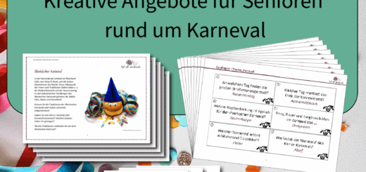Die Gruppenstunde “Mit Glück ins neue Jahr” zum Thema Silvester und Neujahr. Wie haben die Senioren Neujahr gefeiert? Welche Neujahrsvorsätze haben die Senioren früher gehabt? Diese und weitere biografische Fragen werden in dieser Gruppenstunde thematisiert. Neben den Biografiefragen finden Sie in diesem Gruppenstundenkonzept das Gedicht “In der Neujahrsnacht” zum Vorlesen sowie eine Sammlung verschiedener Traditionen zu Silvester und Neujahr, eine ABC-Gedächtnisübung zum Thema und verschiedene Sprichwörter, die durch die Senioren ergänzt werden können. Als Zusatzmaterial haben wir für Sie eine Idee verfasst, wie man die Festlichkeiten zu Neujahr und Silvester in die Zimmer der bettlägerigen Senioren einer Einrichtung bringen kann. Zudem bieten wir Ihnen eine kreative Möglichkeit für die Senioren an, eine Glückskarte für Grüße oder Neujahresvorsätze zu gestalten.