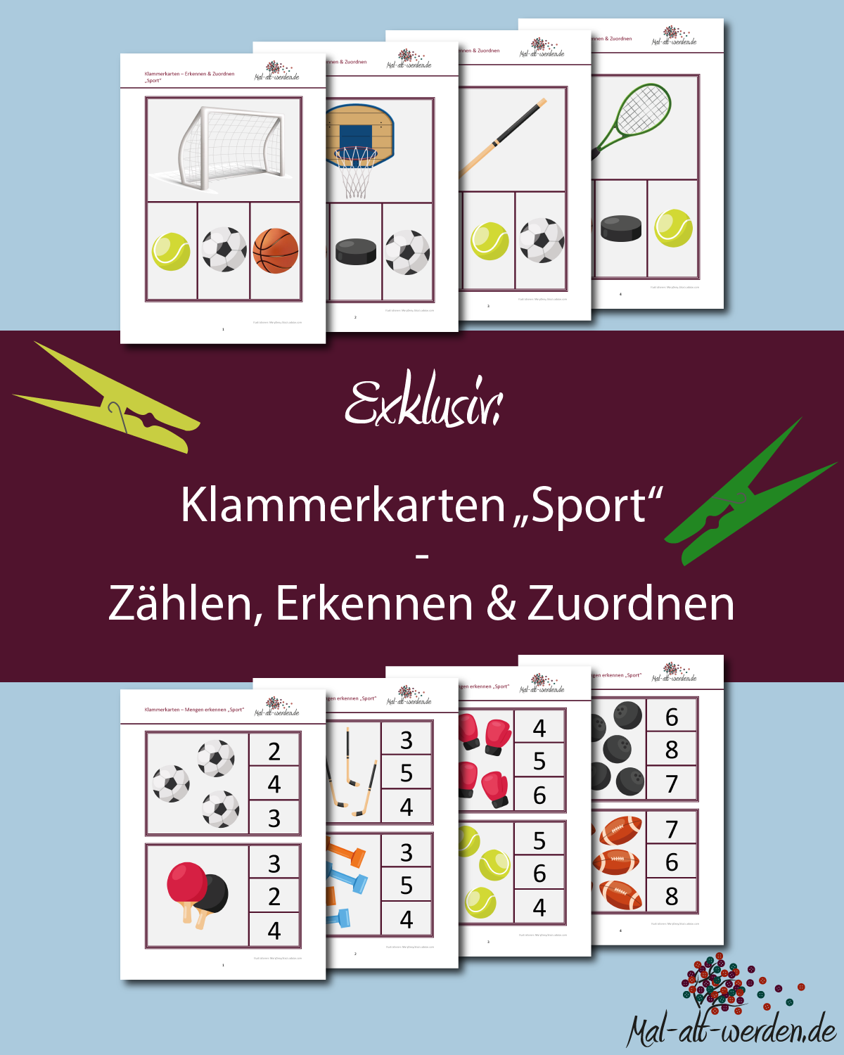 Exklusiv: Klammerkarten “Sport” – Zählen, Erkennen & Zuordnen