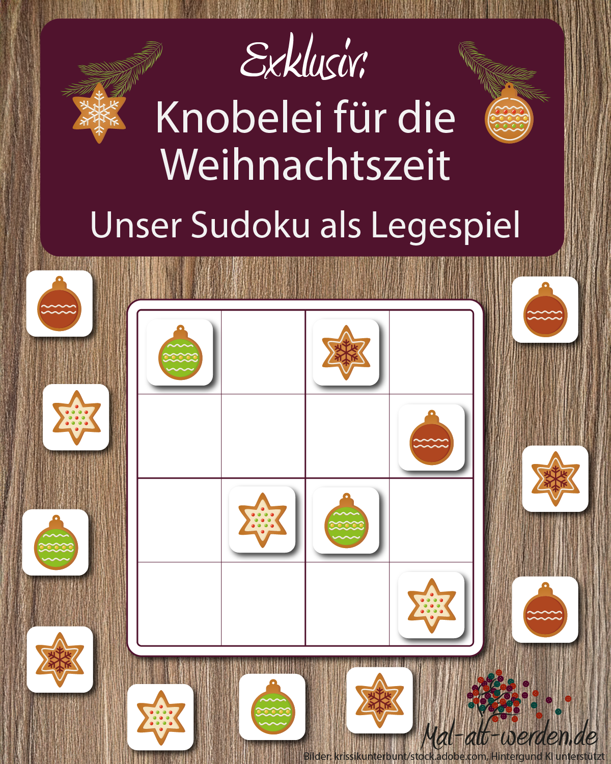 Das weihnachtliche Sudoku ist eine schöne Idee für gemütliche Nachmittage im Advent. Es fördert die Konzentration, die Wahrnehmung und bereitet einfach Freude.