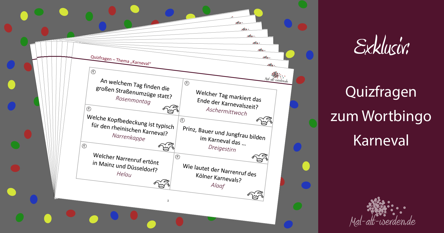 Hier können Sie unsere Quizfragen zum Wortbingo Karneval herunterladen und ausdrucken: