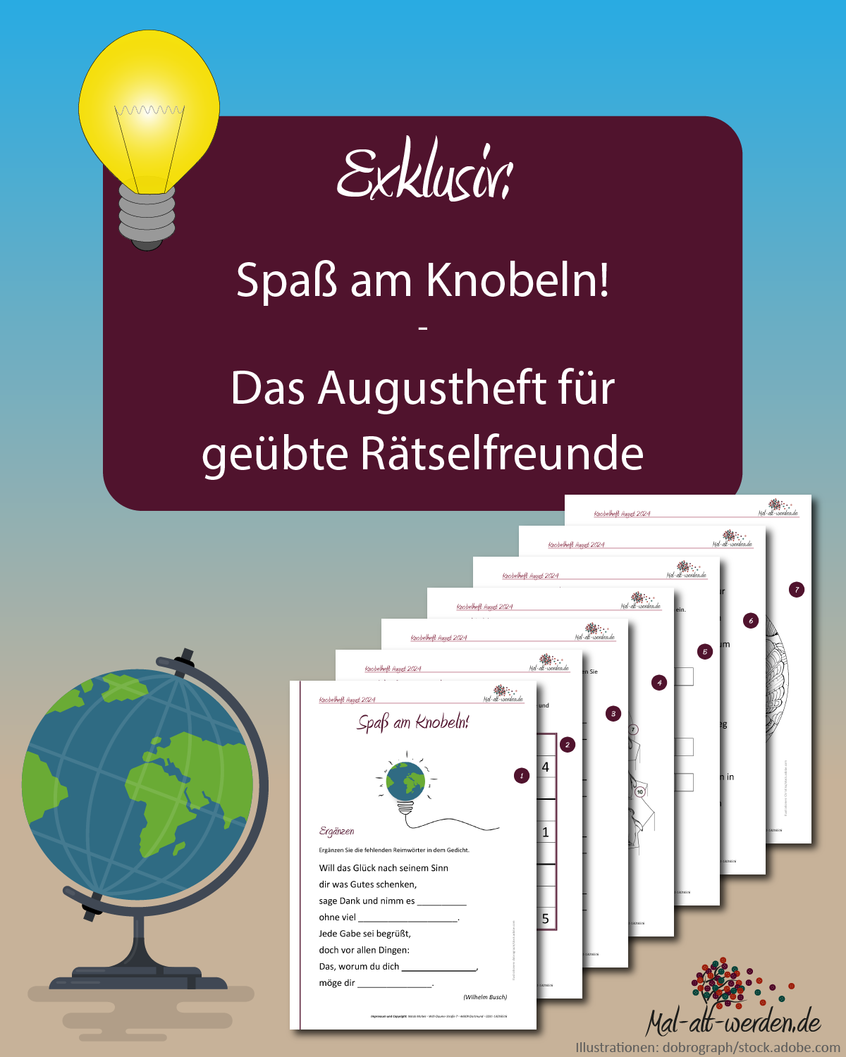 Hier können Sie das Augustheft “Spaß am Knobeln!” herunterladen:
