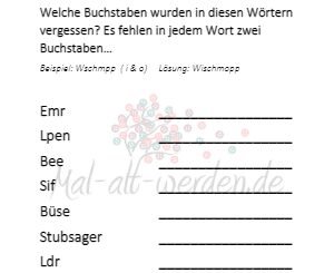 Das Rätselheft können Sie interessierten Senioren als ganzes Heft zum entspannten Knobeln ausdrucken oder Sie nutzen einzelne Seiten im Rahmen gemeinsamer Aktivitäten. Dabei können Sie sich ganz nach den Vorlieben der Senioren richten. Natürlich haben wir auch in diesem Heft einen Lösungsteil erstellt, falls die passende Lösung mal nicht gefunden werden sollte.