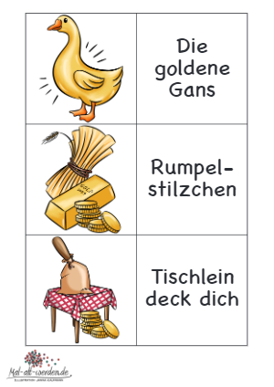 Hier können Sie die Spielkarten für das Zuordnungsspiel Märchen zum Ausdrucken herunterladen:
