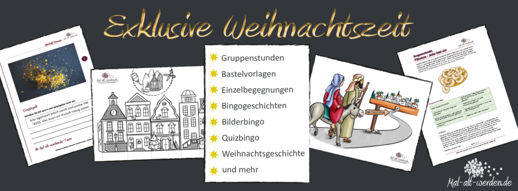 In unserem Exklusiv-Bereich finden Sie umfangreiche und aufwändige gestaltete Beiträge sowie zahlreiche Vorlagen für die Weihnachtszeit, die Sie nur noch ausdrucken müssen. Diese gehen von vollständig ausgearbeiteten Gruppenstunden, über Bastelvorlagen, Spielideen und einem Weihnachtsliederheft, bis hin zu Gestaltungskonzepten für die Einzelbegegnung und Rätseln. Wenn Sie auf diese Inhalte zugreifen möchten, bestellen Sie sich einen Zugang zu unserem Exklusiv-Bereich.