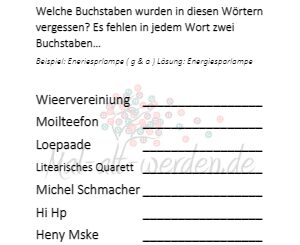 Auf dem Arbeitsblatt stehen fünf Begriffe, die sich rund um das Thema Geburtstag drehen. Die Aufgabe der Mitmachenden ist es nun, mindestens drei Wörter zu finden, die sich mit den jeweiligen Begriffen zusammensetzen lassen. Die neuen, sinnvollen Begriffe werden dann auf das Arbeitsblatt geschrieben. Hat jeder Teilnehmende die Übung beendet, werden die Wortschöpfungen vorgelesen.
