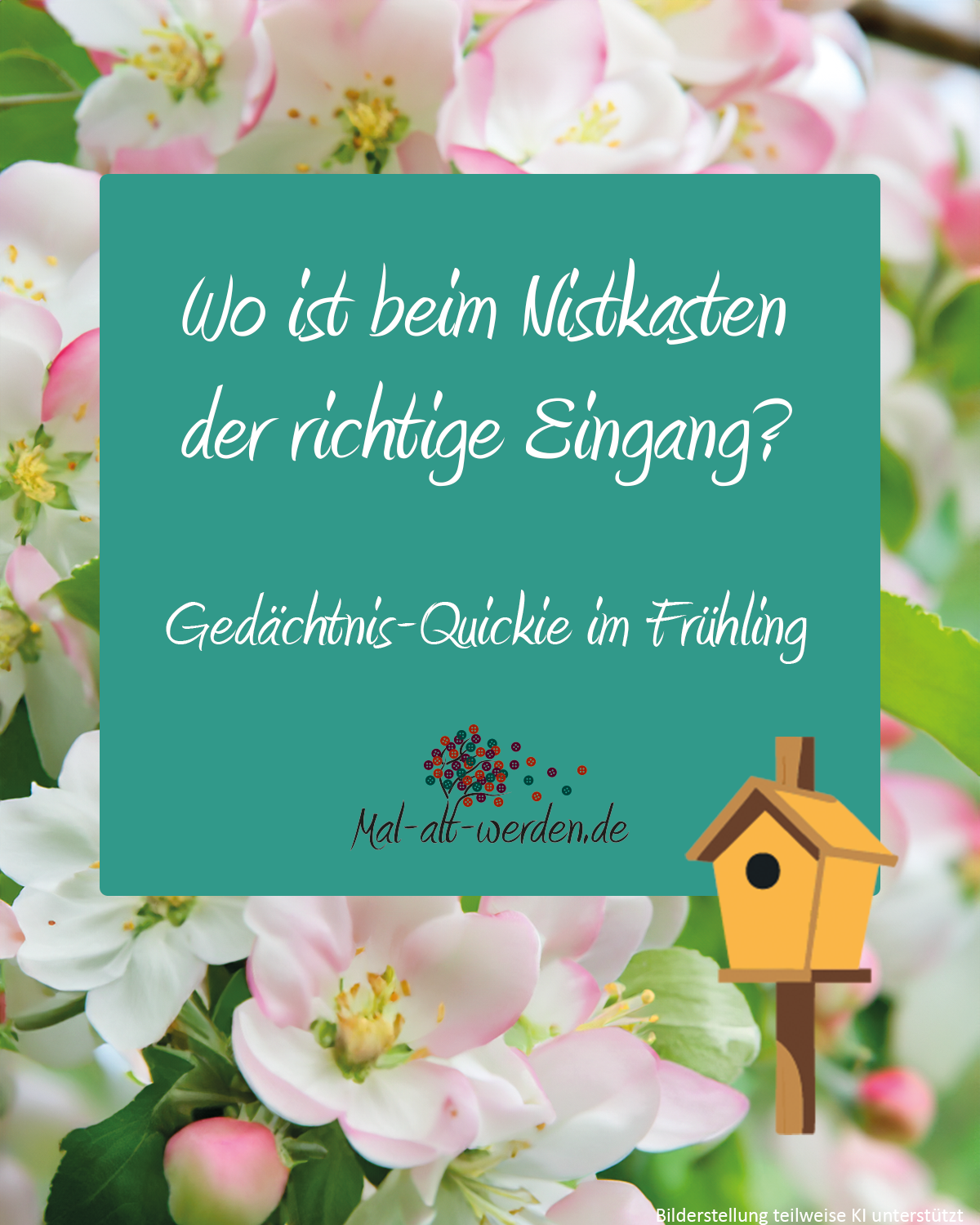 Nutzen Sie unser Gedächtnis-Quickie rund um Vögel und Nistkästen für Ihre Begegnungen mit Senioren und Menschen mit Demenz im Frühling. Eine passende Einstiegsgeschichte und Ideen für Fragen für biografiebezogene Unterhaltungen haben wir in unserem Beitrag Vier Wände, ein Dach, ein Einflugloch veröffentlicht.