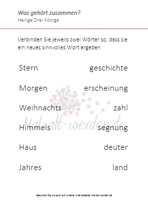 Zusammengesetzte Wörter zu dem Thema Heilige Drei Könige. Ein kostenloses Gedächtnistraining