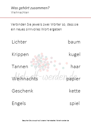 Zusammengesetzte Wörter zu dem Thema Weihnachten. Ein Gedächtnistraining für Senioren