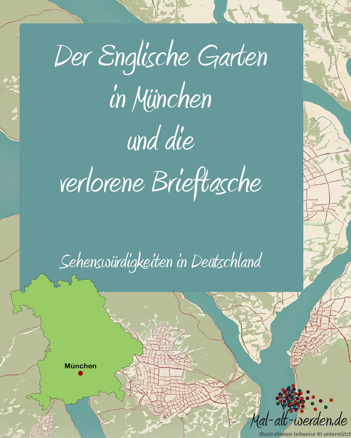 Plötzlich fiel ihm auf einer Parkbank eine Brieftasche auf. Sie lag dort verlassen. Peter sah sich um, aber niemand war zu sehen. Zögernd hob er die Brieftasche auf und öffnete sie. Drinnen fand er etwas Kleingeld, eine alte Fahrkarte und ein vergilbtes Foto. Auf dem Foto war eine junge Frau zu sehen, die lachend vor dem Monopteros stand und ihm bekannt vorkam.