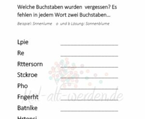 Anschließend können Sie noch eine Übung mit einem Anagramm und eine Übung mit Synonymen für das Gedächtnistraining nutzen.