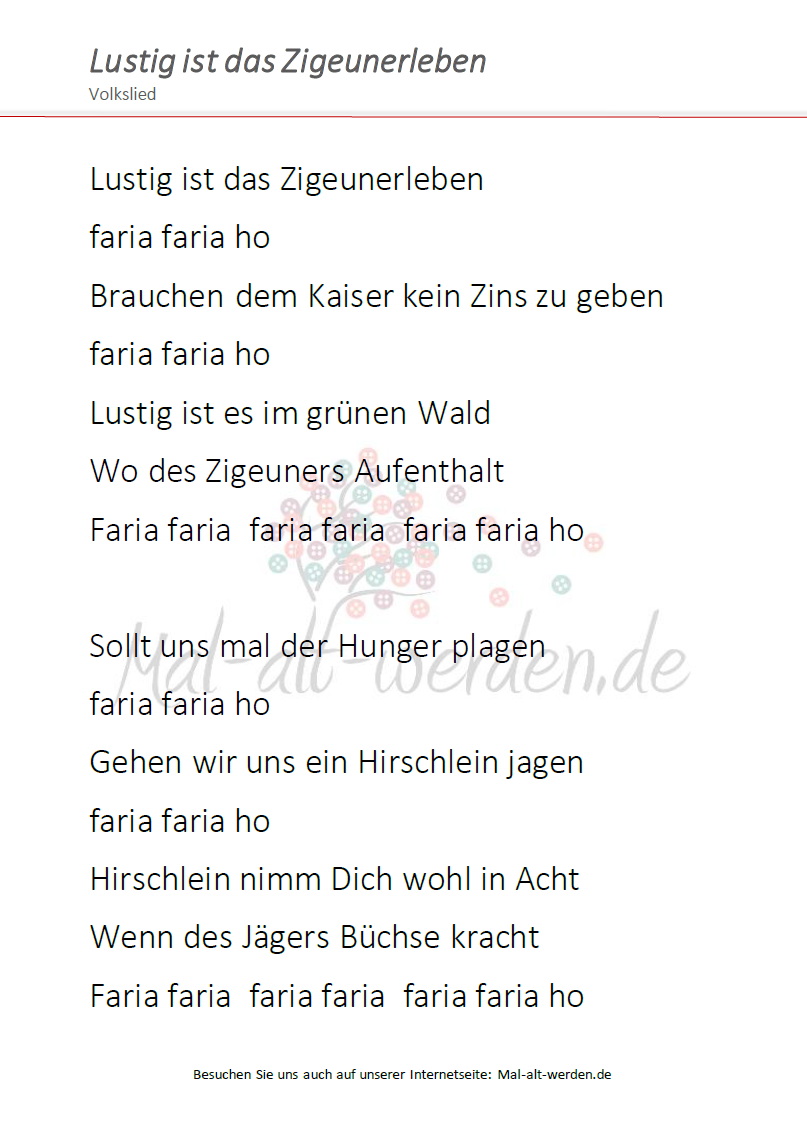 Den Text von “Lustig ist das Zigeunerleben” können Sie hier als Großdruck-Liedblatt herunterladen und ausdrucken: