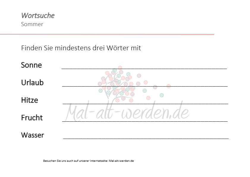 Sommer – Das Arbeitsblatt “Wortsuche” als Gedächtnisübung für Senioren