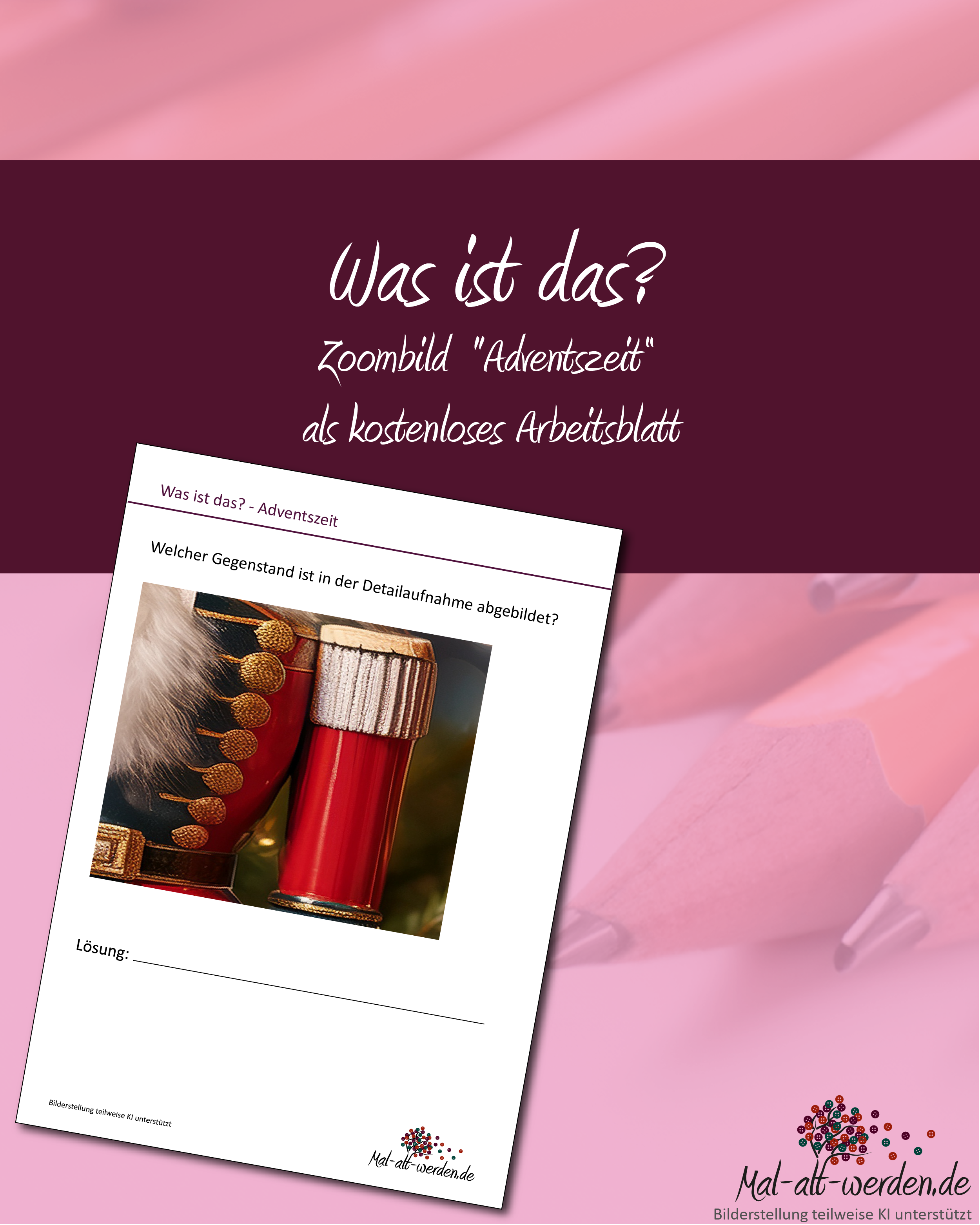 Dieses Arbeitsblatt sorgt für Rätselspaß in der Adventszeit. Das gezeigte Detailbild zeigt einen bekannten Gegenstand aus der Weihnachtszeit, allerdings so nah aufgenommen, dass er auf den ersten Blick kaum zu erkennen ist. Die Teilnehmenden...