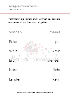 Ist unsere Erde nicht ein wundervoller Planet? Zum Thema Erde haben wir für die Senioren ein Arbeitsblatt “Wortsuche” als kostenloses Gedächtnistraining eingestellt. Das Arbeitsblatt “Wortsuche” zum Thema Erde Laden Sie das Arbeitsblatt mit dem...