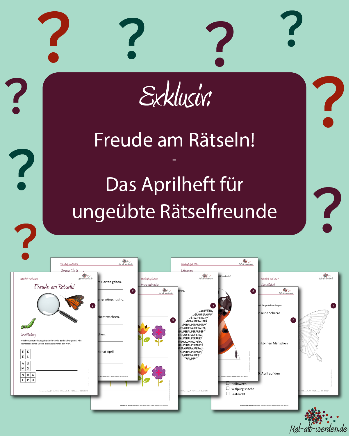 Unser Aprilheft “Freude am Rätseln!” widmet sich der erwachenden Natur und dem Garten. Es warten darin viele neue Rätsel und Kreativaufgaben auf die Senioren. Die Rätsel dieses Hefts eigenen sich vor allem für Senioren,...