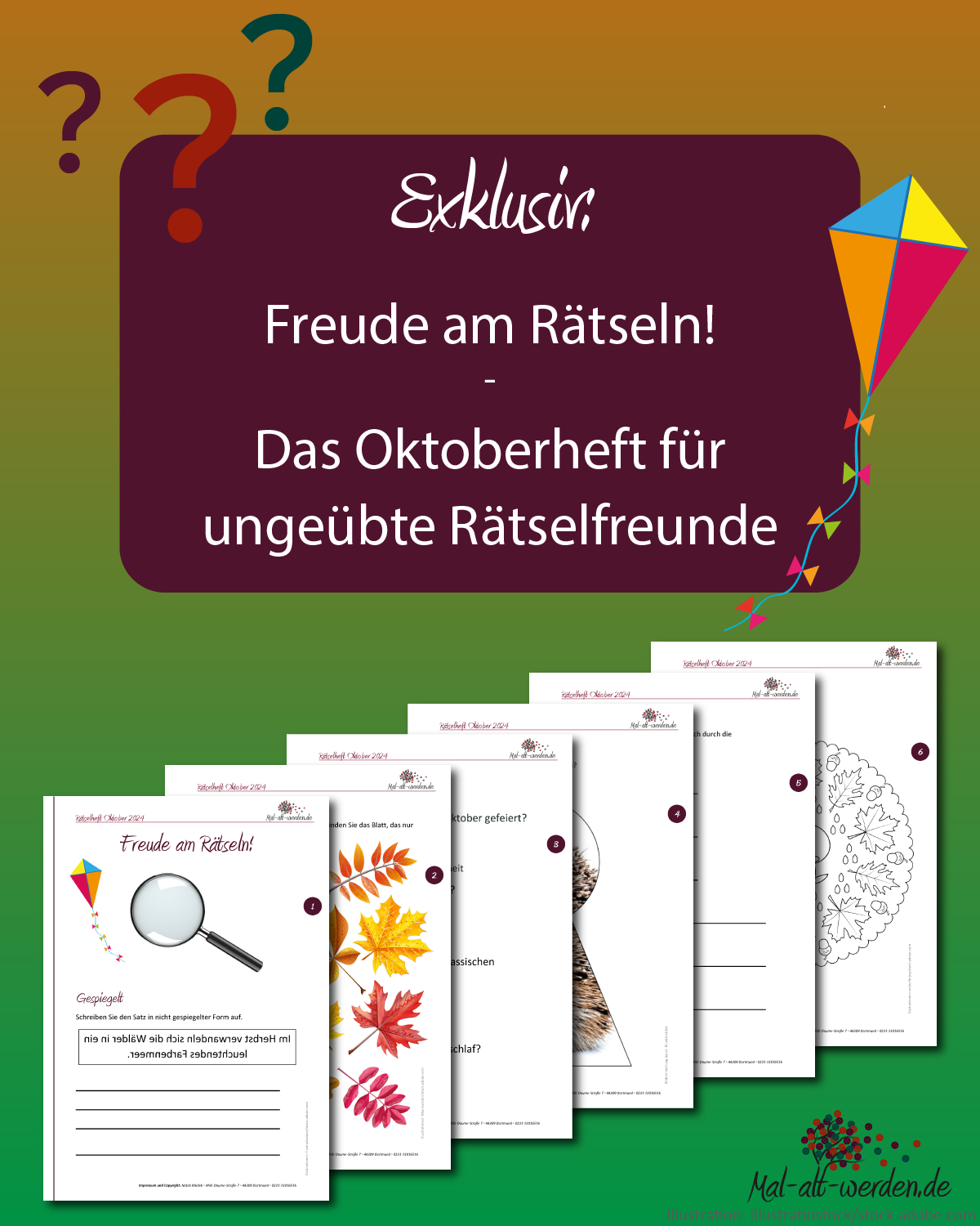 Es wird ganz herbstlich in dem Rätselheft, das wir für den Oktober vorbereitet haben! Mit viel Liebe zum Detail haben wir ein siebenseitiges Heft gestaltet, das sowohl für ungeübte Senioren als auch für Menschen...