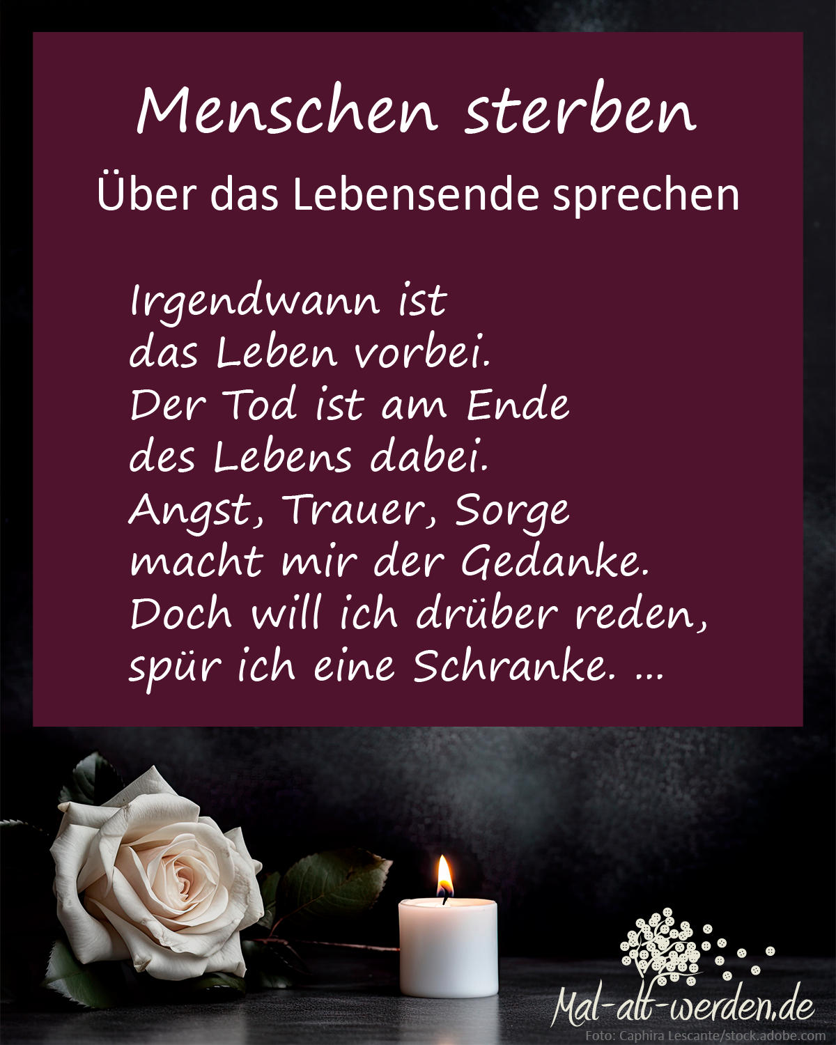 Über den Tod zu sprechen fällt vielen Menschen schwer. Gerade in der Begleitung von Seniorinnen und Senioren begegnen uns immer wieder Fragen nach Abschied, Angst, Hoffnung und dem Wunsch nach Nähe. Solche Gespräche brauchen...